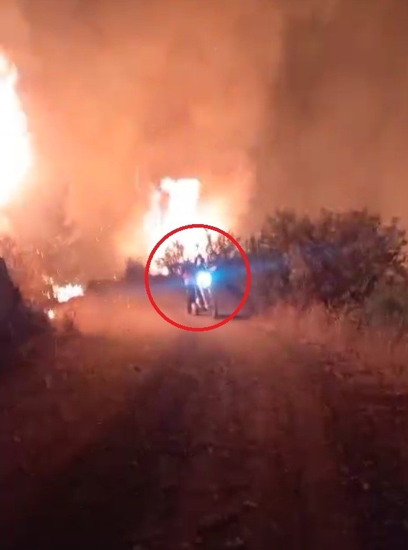 Görüntülerde, itfaiye personelinin alevlerin arasından yaşlı vatandaşı motosikletle kurtarması yer alıyor. Bu cesur kurtarma, yangının korkutucu boyutunu ve itfaiye personellerinin özverisini gözler önüne seriyor.