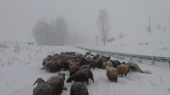 Bölge genelinde olduğu gibi Bingöl’de de kar yağışı etkisini sürdürdü. Kar yağışıyla beraber besicilerin zorlu kış şartlarındaki mesaisi de tamamen başlamış oldu. Kar kalınlığı kent merkezinde yer yer 50 santimetreye ulaşırken, kırsal alanlarda da 1 metreyi buldu. Yılın neredeyse en fazla kar yağışı alan ilçelerinden biri olan Karlıova’da, besiciler kar üstünde hayvanlarını otlatıyor. İlçeye bağlı Kaynarpınar köyü sakinlerinden Fazlı Gürgen, yılladır geçimini hayvancılık yaparak sağlıyor. Karın yağmasının ardından yaz aylarında istifledikleri otları kızaklara yükleyerek atlarla taşıyan Gürgen, aynı işlemi günde iki defa yapıyor. 80’e yakın küçükbaş hayvanı bulunan Gürgen, bu yıl geç gelen kış nedeniyle kuraklık endişesi duyduğunu belirtti. Gürgen, "Kaynarpınar köyünde ikamet ediyorum. Geçim kaynağımız hayvancılık olduğu için, hayvanlarla uğraşıyorum. Tabi bu yıl biraz kuraklıktan korktuk, seneye ot ve yem olmaz diye ama çok şükür ki kar yağışı oldu. İnşallah kuraklık biter, biz de rahat ederiz" dedi.