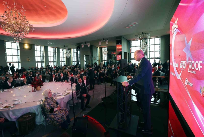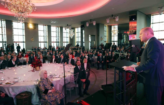 Cumhurbaşkanı Recep Tayyip Erdoğan, Türk-Amerikan Ulusal Yönlendirme Komitesi'nin düzenlediği akşam yemeğinde önemli açıklamalarda bulundu. Erdoğan, konuşmasında Türk-Amerikan toplumuna hitap ederek, Amerika'daki Türk toplumunun dayanışma ruhu ve birlik içinde hareket etmesinden duyduğu memnuniyeti dile getirdi. Amerika'daki Türk toplumuna her alanda destek olmaya devam edeceklerini vurguladı.