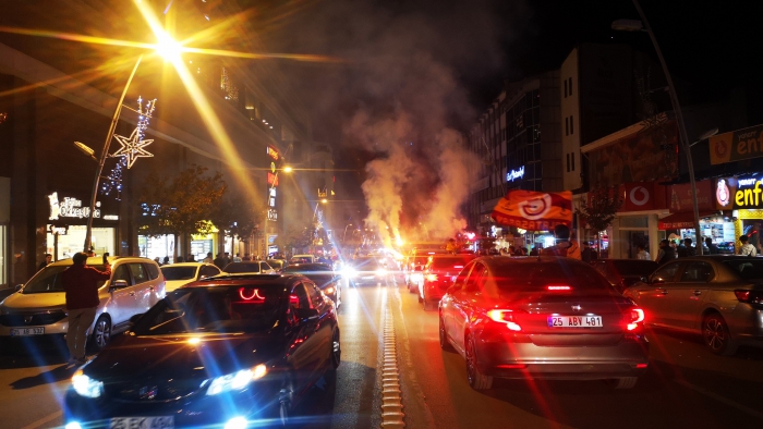Geçtiğimiz hafta Süper Lig'de şampiyonluğu garantileyen Galatasaray’ın bu akşam da ezeli rakibi Fenerbahçe’yi 3-0 mağlup etmesi Erzurum’da taraftarların sokağa dökülmesine neden oldu.