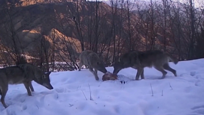 Erzurum merkeze 178 kilometre uzaklıktaki Olur ilçesinde yaşayan Ercan Polat isimli doğasever, ormana yerleştirdiği fotokapan ile yaban hayatını görüntülüyor. Polat’ın fotokapanına bu kez kurt sürüsü yakalandı.