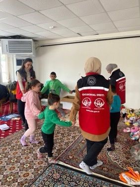 Depremzede aile ve çocuklarına psikososyal hizmeti verildiğini ifade eden İlbaş, ‘’Afet dönemlerinde bireysel ve toplumsal iyilik halinin sağlanması için büyük önem taşıyan psikososyal destek hizmetleri afetle mücadelede yapılacakların başında gelmektedir. Deprem bölgelerinde yaraları sarmak adına psikososyal destek ekiplerimizle vatandaşlarımızın yaşadıkları travmanın etkilerini en aza indirmeyi hedefliyoruz. Şu an için Adıyaman ilimizde üç ekibimiz, Malatya ilinde bir ekibimiz görevlendirildi. Ekiplerimiz birer haftalık dönüşümlerle deprem bölgesinde bulunuyor. Ekibimiz meslek elemanlarımız ve destek elemanlarımızdan oluşuyor. Depremzede çocuklarımızın yaşadıkları travmaları aşması konusunda etkinlikler düzenlenerek, onların psikolojik acıdan desteklenmesini sağlıyoruz. Destek elemanlarımızda bölgeye gelen yardım tırlarının tahliye edilmesi ve yerleştirilmesinde, depremzedelere yardımların dağıtılmasında yardımcı oluyor. Amacımız depremzedelerimizin yaralarını sarmak’’ dedi.