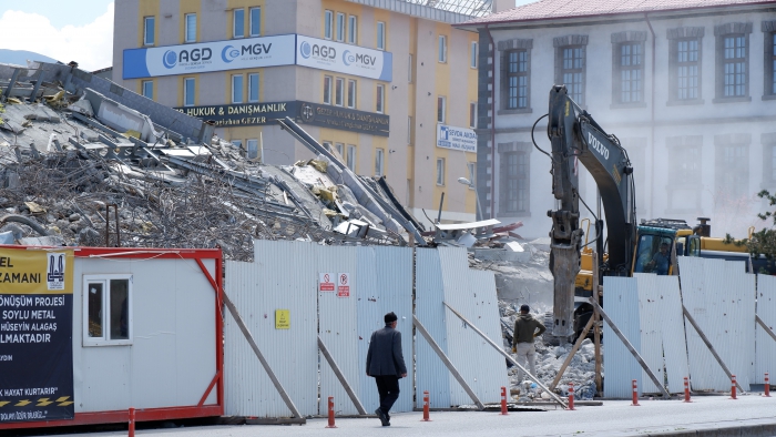 Erzurum Belediyesi hizmet binası olarak hizmete giren, şehrin tam merkezinde bulunan ve şehir siluetinin önemli bir parçası olan binada yıkım işlemi bitmek üzere. Söz konusu bina Erzurum Büyükşehir Belediyesi’nin 80’lı yılların sonunda Merkezi Yönetim Caddesi’ndeki yeni hizmet binasına taşınmasıyla farklı amaçlar için kullanıldı. Son dönemlerde SGK İl Müdürlüğü tarafından kullanılan binanın riskli olması ve Kale Çevre Düzenlemesi çerçevesinde yıkımına karar verilmişti.