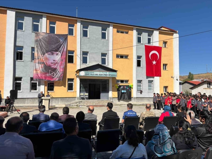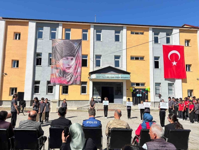 Şehit Polis Anıl Kaan Aybek Ortaokulu'nda gerçekleştirilen program, saygı duruşu ve İstiklal Marşı'nın okunmasıyla başladı. Okul Müdürü Cengiz Çiçek'in konuşmasının ardından öğrenciler şiirler okudu ve çeşitli gösteriler sundu.