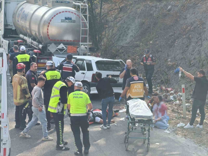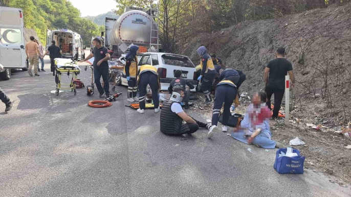 Bursa'nın İnegöl ilçesinde meydana gelen trafik kazasında, kontrolden çıkan bir otomobilin park halindeki asit yüklü tankere çarpması sonucu 1'i bebek olmak üzere 5 kişi yaralandı.