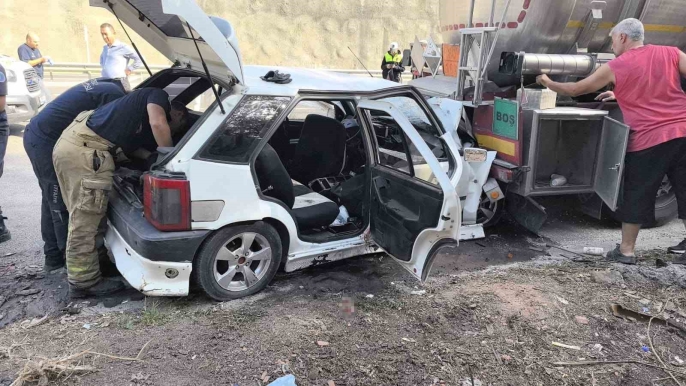 Kaza, saat 15.00 sularında Bursa-Ankara karayolu üzeri Mezit boğazı mevkisinde gerçekleşti. Edinilen bilgilere göre, İnegöl'den Bozüyük istikametine seyreden Enes Y. (30) yönetimindeki 10 BDC 83 plakalı otomobil, sürücüsünün uyuyakaldığı iddia edilmesi üzerine kontrolden çıkarak yol kenarında park halinde bulunan Mehmet G. (52) yönetimindeki 35 BZP 594 plakalı asit yüklü tankere arkadan çarptı.