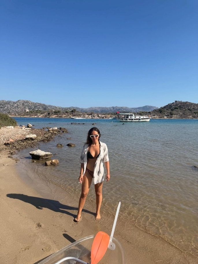 Muğla'nın Marmaris ilçesine bağlı Bozburun'da tatil yapan İpek Karapınar, keyifli anlarını takipçileriyle paylaştı. Şeffaf bir konaya binerek denizin tadını çıkaran 41 yaşındaki oyuncu, paylaşımına "Şeffaf" notunu düştü. Bu paylaşım kısa sürede büyük beğeni topladı.