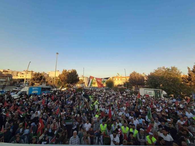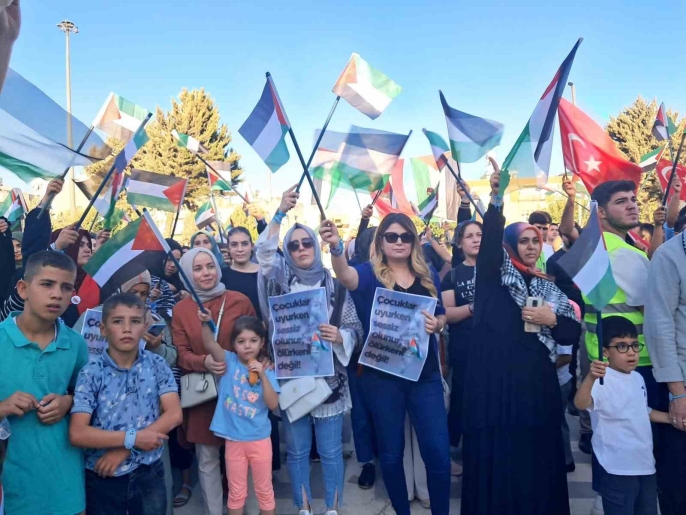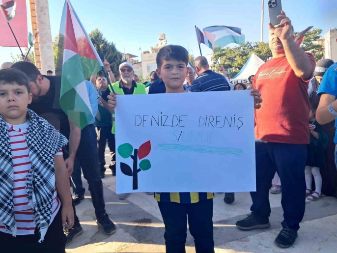 İsrail'in Gazze ablukasına karşı insani yardım götüren Küresel Sumud Filosu'na yönelik saldırılar, Kilis'te düzenlenen bir mitingle protesto edildi.