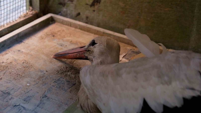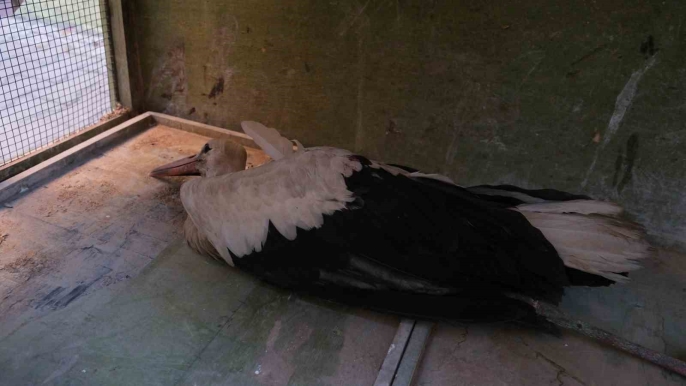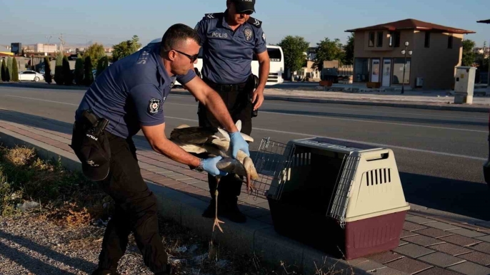 Karaman'da bir vatandaş tarafından yol kenarında bitkin ve yaralı halde bulunan bir leylek, koruma altına alındı.