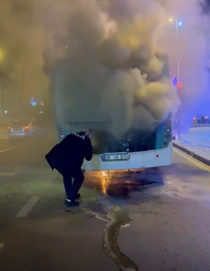 38 AB 076 plakalı otobüs, kırmızı ışıkta beklerken motor kısmından dumanlar yükselmeye başladı. Dumanlar kısa sürede alevlere dönüştü. Olay yerine gelen polis ekipleri, yanlarında bulunan yangın tüpleriyle hızlı bir müdahalede bulundu ve yangının büyümesini engelledi.