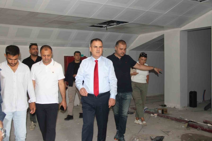 Muğla Valisi Dr. İdris Akbıyık, yapımı devam eden Atatürk Stadyumu'nda incelemelerde bulundu. Vali, Muğlaspor Başkanı Menaf Kıyanç ile birlikte yeni yapılan odaları, tribünleri ve soyunma odalarını gezerek inşaatın son durumu hakkında bilgi aldı.