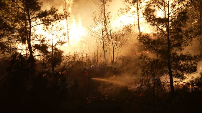 Muğla'nın Köyceğiz ve Milas ilçelerinde başlayan orman yangınlarıyla mücadele gece boyunca devam etti. Ateşle savaşan ekipler, karanlığa rağmen alevlerle mücadele ederek yangını kontrol altına almaya çalışıyor.