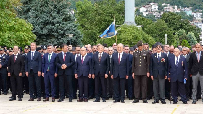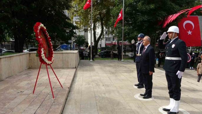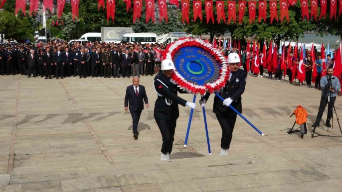 Atatürk Anıtı'nda düzenlenen törende Vali Muammer Erol, Garnizon Komutanı İkmal Albay Hakan Oktay, Büyükşehir Belediye Başkanı Dr. Mehmet Hilmi Güler ve çeşitli dernek başkanları çelenk sundular. Saygı duruşu ve İstiklal Marşı'nın okunmasının ardından konuşmalar yapıldı.