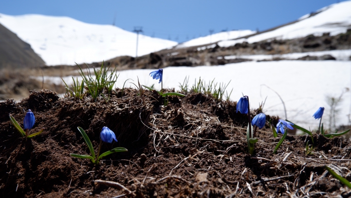Nisan ayında kayak sezonunu kapatan Palandöken’in zirvelerinde 12 ay karın eksik olmadığı bölgeler de bulunuyor. Baharda bir yanda açan rengarenk çiçekleri, bir yanda eriyen karla coşan küçük dereler ve nefis havasıyla Palandöken Dağı meraklılarını bekliyor.