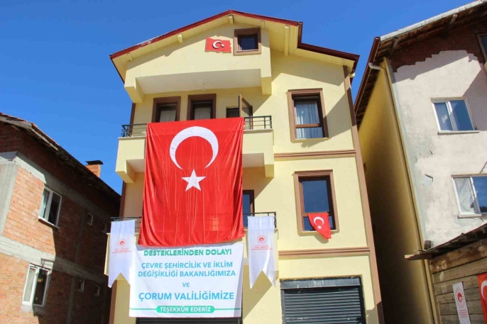 Teslim törenine Çorum Valisi Ali Çalgan, AK Parti Milletvekili Oğuzhan Kaya, il ve ilçe protokolü ile vatandaşlar katıldı. Ev, dualarla şehit ailesine teslim edildi. Daha sonra Şehit Mustafa Uslu'nun kabrini ziyaret ederek dua edildi. Şehidin babası Sadık Uslu, Cumhurbaşkanı Recep Tayyip Erdoğan, Bakan Kurum ve ilgililere teşekkürlerini iletti.