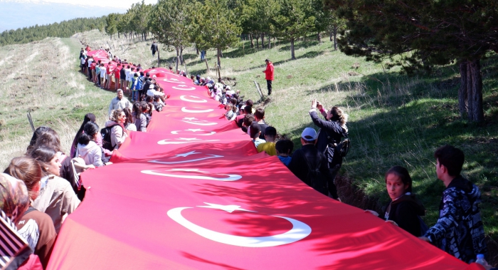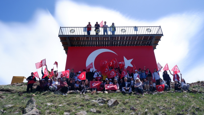 Gençler, Palandöken zirvesine 150 metrelik Türk bayrağı ile birlikte 11 kilometrelik yürüyüş yaptıl. Gençlik Haftası çerçevesinde Erzurumlu gençler, şehitleri anmak için Palandöken’in yaklaşık 3 bin rakımlı tepesine yürüdü. Erzurum Abdurrahman Gazi Eko Turizm Alanı Doğa Yürüyüş ve Bisiklet Parkuru'nda, çam ağaçları içinde yaklaşık 300 öğrenci ve genç gönüllü lider, 150 metrelik Türk bayrağını da açarak 11 kilometrelik bir yürüyüş yaptı. Zirvede Türk bayrağı ve Atatürk posteri açan gençler, zirvenin heyecanını yaşadı.
