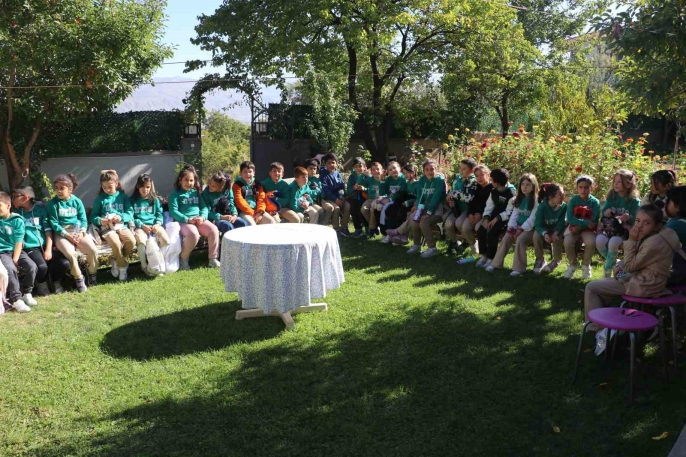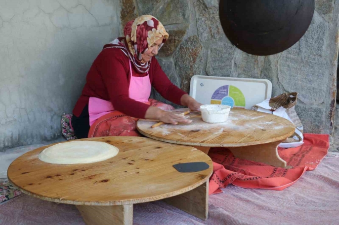 Erzincan merkeze bağlı Ekmekli köyünde kadınlar tarafından üretilen ve coğrafi işaret başvurusu yapılan pekmezli yufka, minik öğrencilere tanıtılarak ikram edildi.