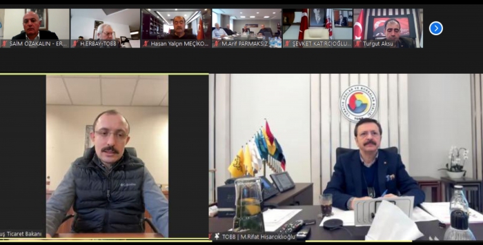 Ticaret Bakanı Mehmet Muş ve TOBB Başkanı Rifat Hisarcıklıoğlu, TOBB’a bağlı oda ve borsaların yönetim kurulu başkalarıyla çevrim içi toplantıda bir araya gelerek, iş dünyasının deprem bölgesinde yürüttüğü çalışmaları değerlendirdi.