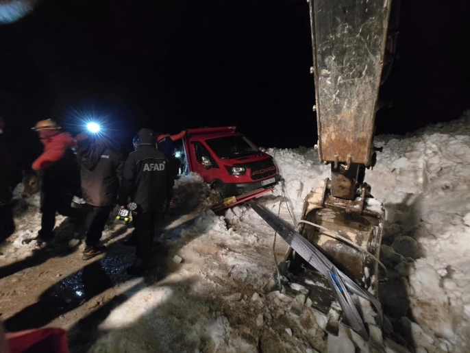 Yoğun kar yağışı sonrası oluşan çığ, İl Özel İdaresi'ne ait bir iş makinesi ve beş aracı yolda mahsur bıraktı. AFAD ve İl Özel İdaresi ekipleri, kısa sürede olay yerine ulaşarak araçlardaki vatandaşları güvenli bölgelere tahliye etti. Ekiplerin başarılı kurtarma çalışmaları sonucu, kar kütlesi altında kalan bir kamyonet ve içindeki hayvanlar da kurtarıldı.