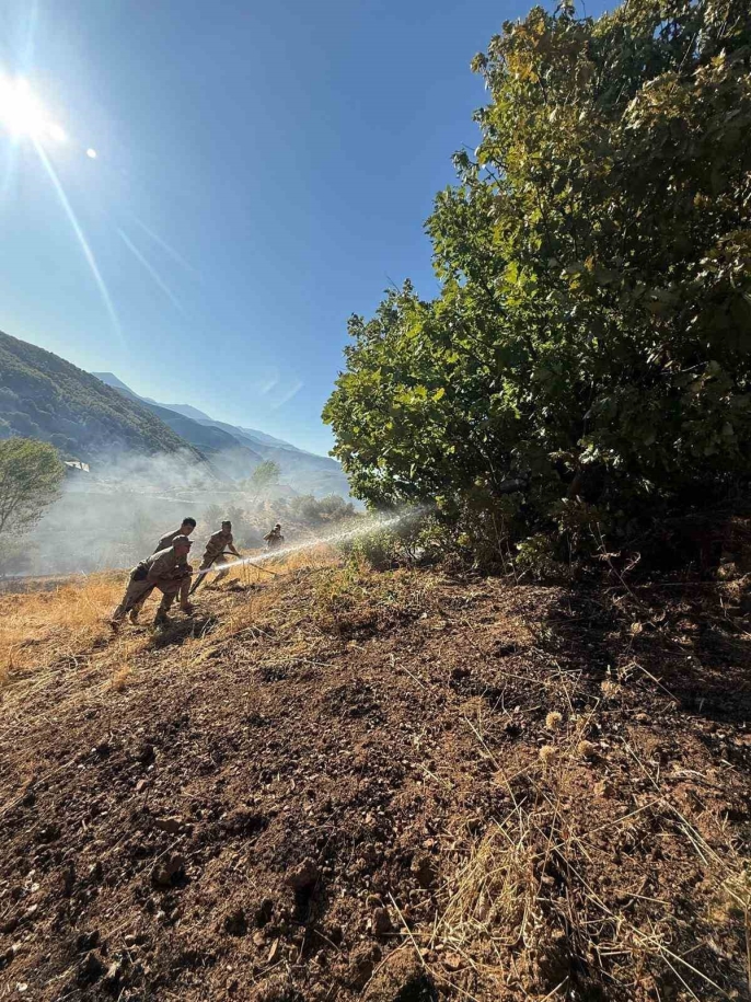 Tunceli'nin Nazımiye ilçesinde meydana gelen bir kırsal alan yangını, itfaiye ve orman ekiplerinin yoğun çalışmaları sonucu kontrol altına alındı. Yangın, Nazımiye ilçesine bağlı Beytaşı köyünde henüz belirlenemeyen bir nedenle başladı. Rüzgarın etkisiyle hızla yayılan alevler, çevredeki kırsal ve ormanlık alanlara sıçrama tehlikesi oluşturdu.