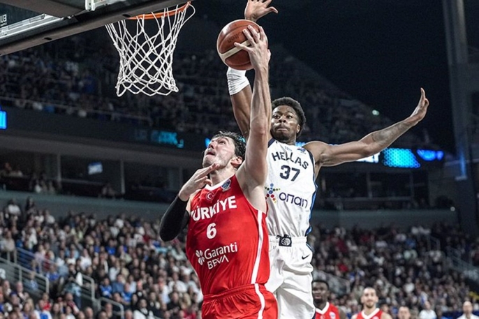 2025 Avrupa Basketbol Şampiyonası (EuroBasket 2025) yarı finalinde Türkiye, Yunanistan'ı 94-68'lik skorla mağlup etti. Karşılaşmaya sert savunma ile başlayan Türkiye, ilk 2 dakikada 7-0'lık seri yakaladı. İkinci yarıda da etkili oyununu sürdüren A Milli Takım, 26. dakikada farkı 26 sayıya (38-64) çıkardı. Yunanistan, Sloukas'ın sayılarıyla farkı 21'e indirse de, Türkiye son çeyreğe 72-51 önde girdi ve maçı 94-68 kazandı.