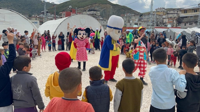 Kahramanmaraş merkezli depremin ardından Hatay’da depremzedelere yönelik yardım ve desteklerini sürdüren Yakutiye Belediyesi çocukları unutmadı.