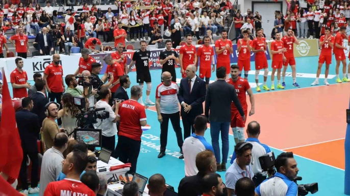 5 bin kişilik salon, Türk bayraklarıyla donatılmıştı ve tamamen doluydu. Maça gösterilen yoğun ilgi nedeniyle salona giremeyenler için Malatya Büyükşehir Belediyesi tarafından dışarıya kurulan LED ekranlar kurulmuştu. Müsabakayı Yunan hakem Vasileios Vasileiadis ile Azerbaycanlı hakem Eldar Zulfugarov yönetti.
