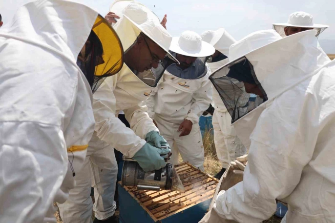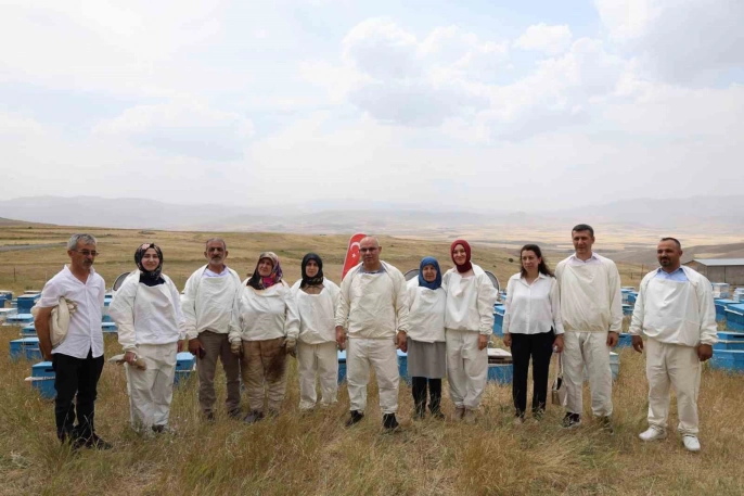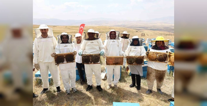Taşlıçay ilçesine bağlı İkiyamaç köyünde arıcı Suzan Sürmeli'nin kovanlarında bal hasadı yapıldı. Ağrı Valisi Mustafa Koç, eşi Neslihan Gül Koç ve Taşlıçay Kaymakamı Kübra Baka Kılıç da hasat programına katıldı. Vali Koç, Ağrı'nın yüksek rakımı, zengin florası ve temiz doğasıyla ülkenin en kaliteli ballarını üretme potansiyeline sahip olduğunu vurguladı. Üreticileri desteklemeye devam edeceklerini belirten Vali Koç, kadın arıcıların başarısından duyduğu memnuniyeti dile getirdi. Ağrı'nın kadim topraklarından sofralara ulaşan bu emeğin her aşamasında yer almanın gurur verici olduğunu ifade eden Vali Koç, üretimi katma değere dönüştürmeyi ve ili arıcılıkta markalaştırmayı hedeflediklerini söyledi. Vali Koç, bal hasadının üreticilere bereket ve bol kazanç getirmesini temenni ederek tüm arıcılara teşekkür etti.