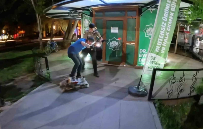 Aksaray'ın Zincirli Mahallesi Bankalar Caddesi'nde bulunan Ulu Cami önündeki belediye büfesinde gece yarısı yaşanan bir olayda, büfenin camını kırarak içeri giren bir şahıs, çaldığı ürünlerle suçüstü yakalandı. Olay, bir vatandaşın hırsızı fark edip 112 Acil Çağrı Merkezini aramasıyla ortaya çıktı.