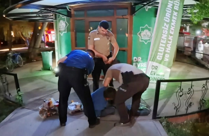 Görüntülendiği fark eden Aşır Ç., 'Çalmadım, açım' diyerek kendini savunmaya çalıştı. Emniyetteki işlemlerinin ardından adli makamlara sevk edilen Aşır Ç., tutuklanarak cezaevine gönderildi. Şahsın, alkol aldıktan sonra belediyenin glütensiz ürün ve halk ekmeği satan büfesini hedef aldığı öğrenildi. Küçük bir çekiçle büfenin camını kırarak içeri girdiği belirtildi.