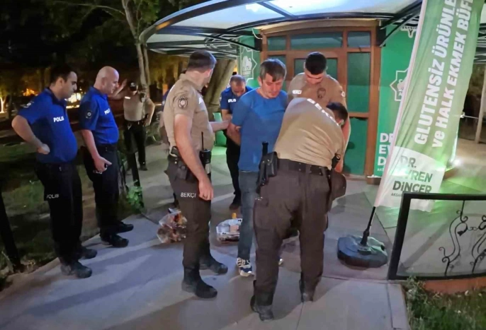 İhbar üzerine olay yerine gelen polis ve bekçi ekipleri, şahsı büfeden çıkarken çaldığı cips, pişmaniye ve diğer ürünleriyle birlikte yakaladı. Polisin koşarak olay yerine geldiği ve zanlıyı etkisiz hale getirdiği anlar güvenlik kameralarına yansıdı. Gözaltına alınan 47 yaşındaki Aşır Ç.'nin üst araması yapıldı.