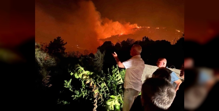 Antalya'nın Alanya ilçesinde, bu gece saat 23.00'te başlayan yangın, rüzgarın etkisiyle hızla büyüdü. Söndürme çalışmaları devam ediyor.