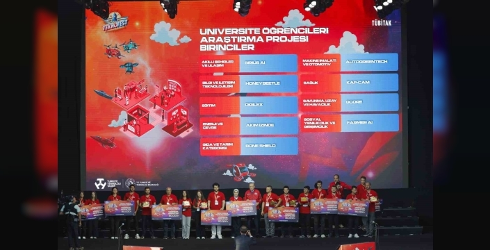 Öğrencilerin geliştirdiği "GIS Tabanlı Çok Kriterli Karar Verme Yöntemleri Uygulaması ile Antalya İli Elektrikli Araç Şarj İstasyonu Yer Seçimi Çalışması" projesi, 2025 TEKNOFEST 2242 Üniversite Öğrencileri Araştırması Projesi kapsamında değerlendirildi. Başarılarıyla dikkat çeken proje, Cumhurbaşkanı Recep Tayyip Erdoğan tarafından ödüllendirildi. Ödül törenine ALKÜ Rektörü Prof. Dr. Kenan Ahmet Türkdoğan, proje danışmanları ve öğrenciler katıldı.