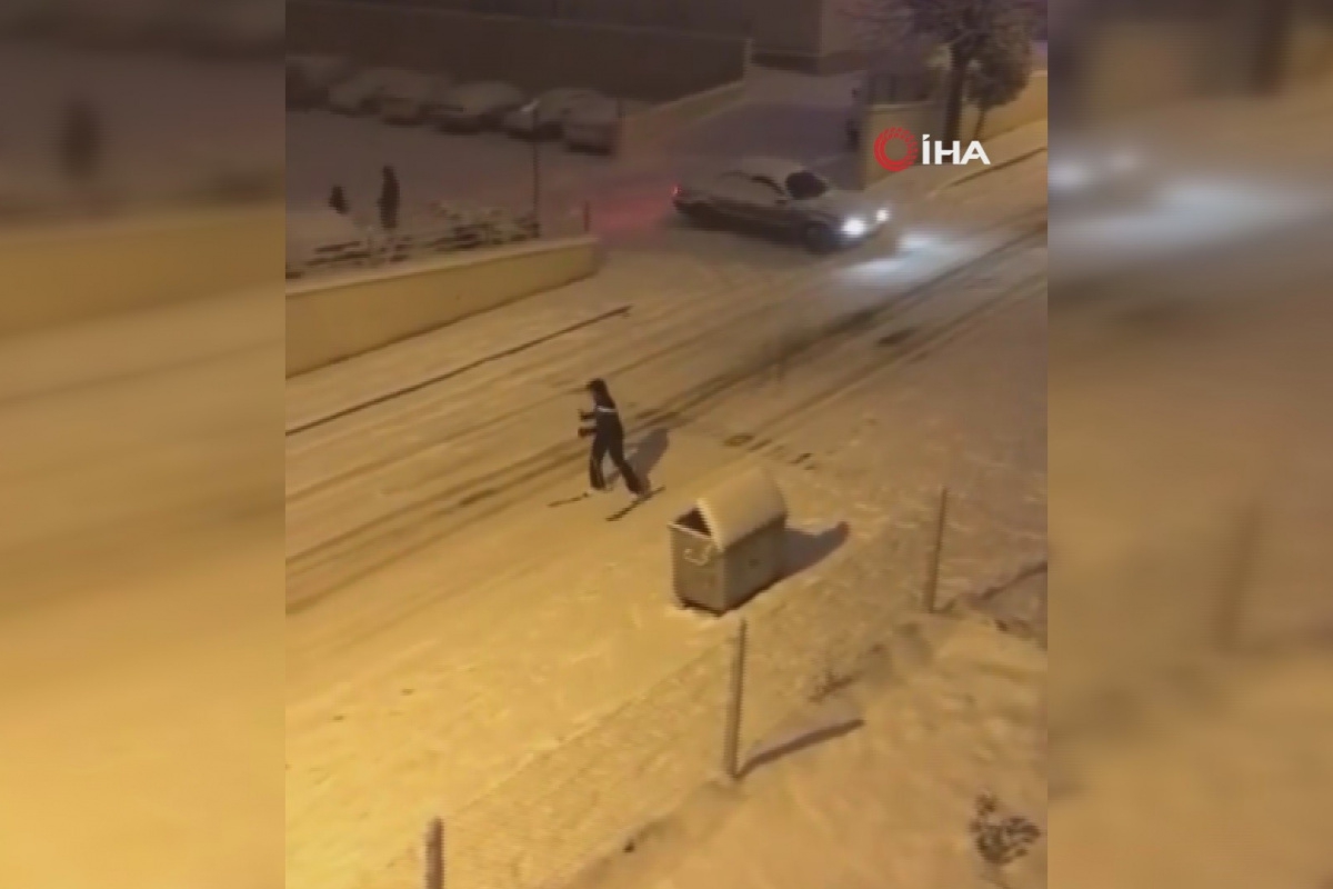 Akşam saatlerinde başlayan kar yağışı sonrası Ankara sokakları beyaza büründü. Kar yağışını gören vatandaşlar kendilerini sokağa attı. Sokakların karla kaplanmasını fırsat bilen bir vatandaş kayak yaptı.