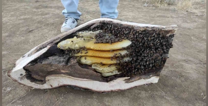Arılar, telef olmamaları için ana arıyla birlikte dikkatlice kovana alındı. Bu ilginç anlar, Mehmet Ali Çağlar tarafından cep telefonu ile kaydedildi. Kilolarca doğal bal elde eden Çağlar, doğanın sunduğu bu lezzeti vatandaşlarla paylaşmayı planlıyor.