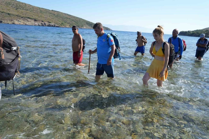 Yürüyüş grubu lideri Erhan Çiftçi öncülüğünde yapılan etkinlikte, doğa tutkunları Cunda Adası'nın Pateriça Burnu'ndan yürüyüşe başladı. Katılımcılar, Yalancı Boğaz üzerinden, deniz seviyesinin yürümeye elverişli olduğu dar bir geçidi kullanarak Maden Adası'na ulaştı. Grup lideri Çiftçi, 'Bugün biz burada doğanın nimetlerinden faydalanmaya, yaşadığımız coğrafyanın en güzel yerlerini görmeye geldik. Şu anda Cunda Adası'ndayız ve karşımızda Maden Adası var. Bugün yürüyerek bir adadan diğerine geçeceğiz. Bu, Türkiye'de çok seyrek görülen, eşsiz bir deneyim,' dedi.