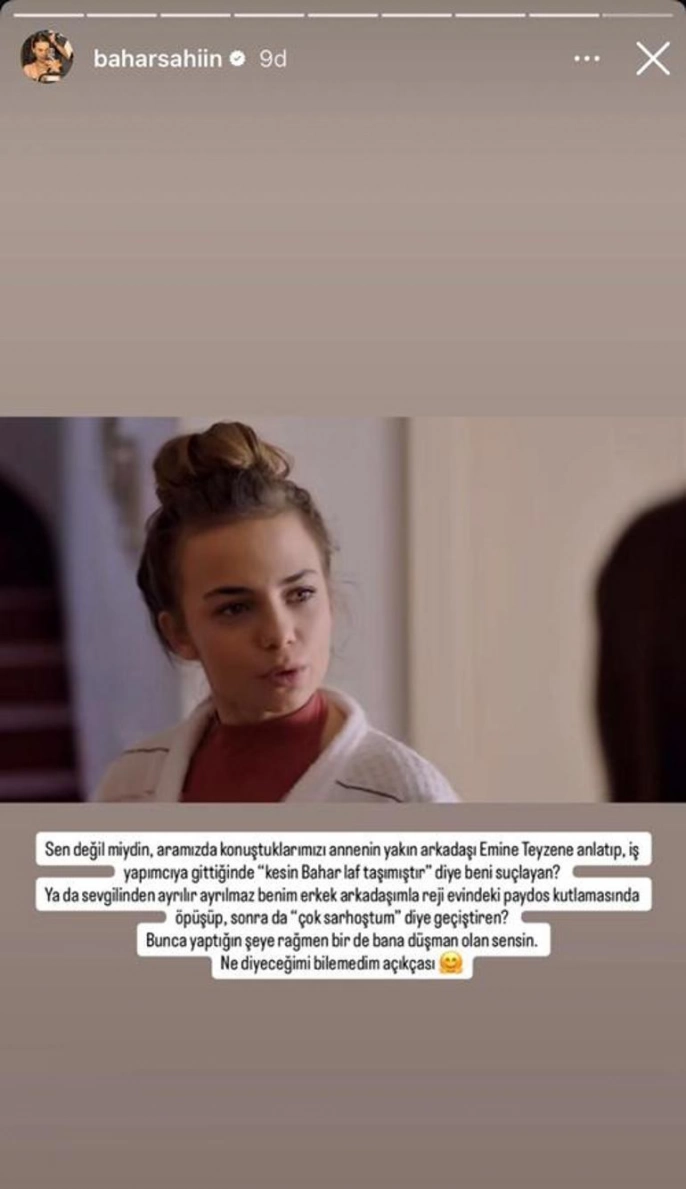 Mine Tugay'a ilk destek, meslektaşı Sera Kutlubey'den geldi. Ancak bu destek, Bahar Şahin'i öfkelendirdi. Şahin, yeni bir açıklama yaparak eski sevgilisiyle ilgili dikkat çeken bir iddiada bulundu. Şahin, Mine Tugay'ın kendisinin işlerini sabote ettiğini ve eski sevgilisinin kendisyle reji evinde öpüştüğünü iddia etti. Bu gelişmeler, magazin dünyasında yeni bir tartışmanın fitilini ateşledi. Olayların bundan sonraki seyri merakla bekleniyor.
