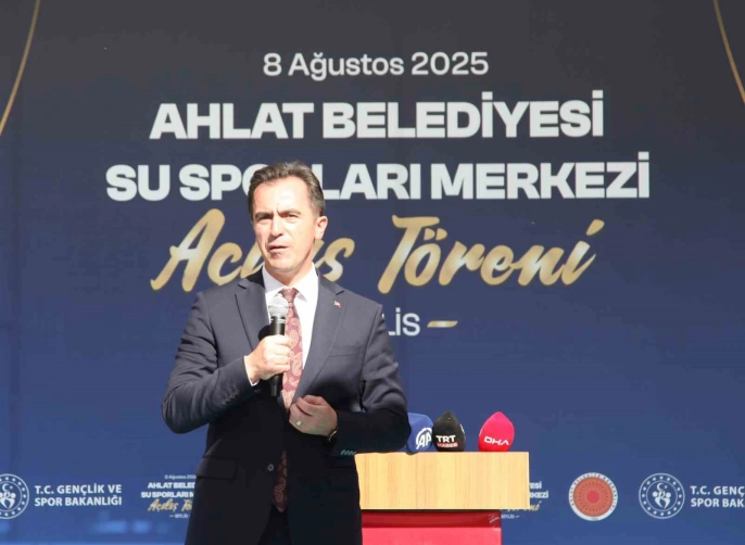 Karayoluyla Ahlat ilçesine geçen Bakan Bak, Ahlat Belediyesi tarafından inşa edilen ‘Bahri Ahlat Su Sporları Merkezi’nin açılış programına katıldı. Van Gölü kenarında, Ahlat’ın Tunus Mahallesi’nde inşa edilen merkezde konuşan Bakan Bak, Bitlis'te çeşitli yatırım protokolleri imzalayacaklarını ve yeni yatırımların müjdesini vereceklerini açıkladı. Güroymak'ta bir gençlik merkezi için protokol imzaladıklarını, Hizan'a salon ve yüzme havuzu başta olmak üzere yatırımlar yapacaklarını, Bitlis merkezde ve Adilcevaz'da yarı olimpik yüzme havuzu projesi üzerinde çalıştıklarını belirtti. Türkiye'nin her yerinde spor yatırımları yaptıklarını ve Cumhurbaşkanının talimatları doğrultusunda çalıştıklarını vurguladı. Modern stadyumlar, kapalı spor salonları, yüzme havuzları, atletizm pistleri ve gençlik kamplarına yatırım yaptıklarını ve yapmaya devam edeceklerini söyledi. Bakan Bak, gençlerin sporla buluşmasının, kötü alışkanlıklardan uzak durmasının önemini vurgulayarak ailelere çocuklarını spor tesislerine getirmeleri çağrısında bulundu.