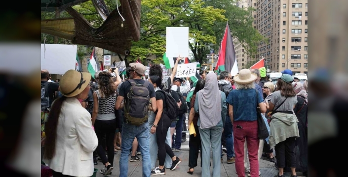 Cumhurbaşkanı Recep Tayyip Erdoğan'ın da konuşma yaptığı BM Genel Kurulu'nda, Filistin destekçileri ABD Başkanı Donald Trump ve İsrail Başbakanı Binyamin Netanyahu gibi liderlere seslerini duyurmak için gösteri düzenledi. "Özgür Gazze, Özgür Filistin" sloganları atan protestocular, acil ateşkes çağrısı yaptı. Eylemciler, Filistin'de hayatını kaybedenlerin fotoğraflarını taşıdı.