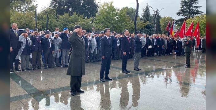 Bolulu gaziler, sağanak yağmur altında İzzet Baysal Caddesi'nden yürüyerek Atatürk Anıtı'na ulaştı. Program, kurumların Atatürk Anıtı'na çelenk sunmasıyla başladı. Ardından saygı duruşunda bulunuldu ve İstiklal Marşı okundu.