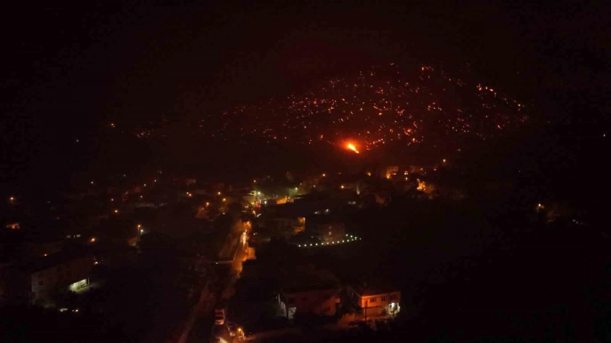 İHA ekibinin dron kamerasıyla kaydettiği görüntüler, yangının şiddetini gözler önüne seriyor. Gecenin karanlığında alevlerin kızıl bir denize dönüştüğü görüntüler, yürekleri burkuyor. Rüzgarın da etkisiyle zorlu şartlarda çalışan ekipler, gece boyunca amansız bir mücadele verdi. Yangının Karatepe’den Avdancık köyü sırtlarına doğru yayılması üzerine, çok sayıda tanker, iş makinesi ve traktör bu bölgeye yönlendirildi. Alevler, İğdir ve Karahıdır köylerinin yerleşim birimlerine sıfır noktaya kadar yaklaştı.