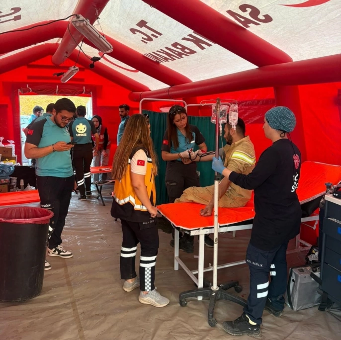 Geçtiğimiz günlerde Bursa’da çıkan orman yangınlarında, itfaiye ekiplerinin yanı sıra sağlık çalışanlarının da büyük bir özveriyle çalıştığı gözlendi. 73 UMKE personeli, 3 noktada kurulan sahra hastanelerinde 350’ye yakın vatandaşa tıbbi müdahalede bulundu.