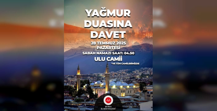 Müftülüğün sosyal medya hesabından yapılan açıklamada, 'Toprağın çatladığı, ormanlarımızın yandığı, tarlaların susuz kaldığı bu günlerde; rahmetin inmesi, bereketin gelmesi için eller semaya, gönüller duaya açılıyor' denildi. Açıklamada, yağmur duası için 28 Temmuz 2025 Pazartesi günü sabah namazı öncesinde Ulu Cami ve tüm camilerde buluşma çağrısı yapıldı. Bu çağrı, hem maneviyatı hem de milli birlik ve beraberliği pekiştiren önemli bir adım olarak değerlendiriliyor. Yangınlarla mücadele eden tüm ekiplere Allah'tan kolaylıklar diliyoruz ve dua ediyoruz ki, bu felaket en kısa sürede sona ersin.