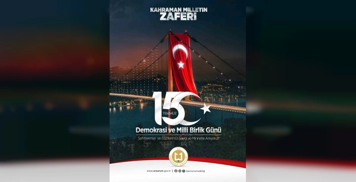 Erzurum Valisi Mustafa Çiftçi, 15 Temmuz Milli Birlik ve Dayanışma Günü dolayısıyla bir mesaj yayınladı. Aziz milletimizin birlik ve beraberlik ruhuyla nelerin üstesinden gelebileceğini tüm dünyaya gösterdiği kutlu direnişin yıl dönümünde, 15 Temmuz Millî Birlik ve Dayanışma Günü’nü milletçe bir kez daha idrak ettiğimizi ifade eden Vali Çiftçi, önemli açıklamalarda bulundu.