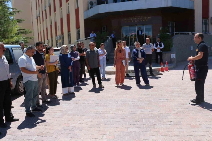 Malatya'nın Darende ilçesindeki Hulusi Efendi Devlet Hastanesi'nde afetlere karşı farkındalık oluşturmak ve acil durumlara hazırlık amacıyla bir eğitim ve tatbikat düzenlendi. Hastane personeli için gerçekleştirilen program, afet öncesi, sırası ve sonrasında izlenmesi gereken adımları kapsayan kapsamlı bir eğitim içeriğine sahipti.