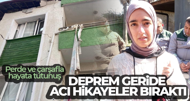 Hatay'da depremde anne, baba ve kardeşini kaybeden 20 yaşındaki üniversite öğrencisi Ümmühan Nur Kalkan'ın zemin katta oturmalarına rağmen, 2 kat dibe çöken binanın 4'üncü katındaki daireden komşuları ile birlikte perde ve çarşaflardan yapılan halatla aşağı inerek kurtulduğu öğrenildi.