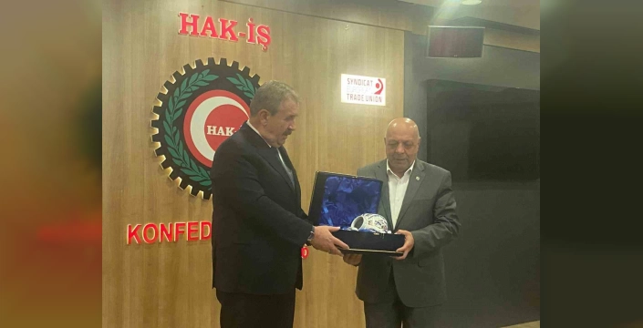 Büyük Birlik Partisi (BBP) Genel Başkanı Mustafa Destici, HAK-İŞ Konfederasyonu Genel Başkanı Mahmut Arslan’ı ziyaret etti. Destici, ziyaret öncesinde Cumhurbaşkanı Recep Tayyip Erdoğan ile yaptığı görüşmeye ilişkin değerlendirmelerde bulundu. Görüşmede yeni imzalanan Kamu işçisi zammı, çalışma hayatındaki gelişmeler, emekçilerin hakları, sendikal mücadelenin önemi ve sosyal adaletin güçlendirilmesi ele alındı.