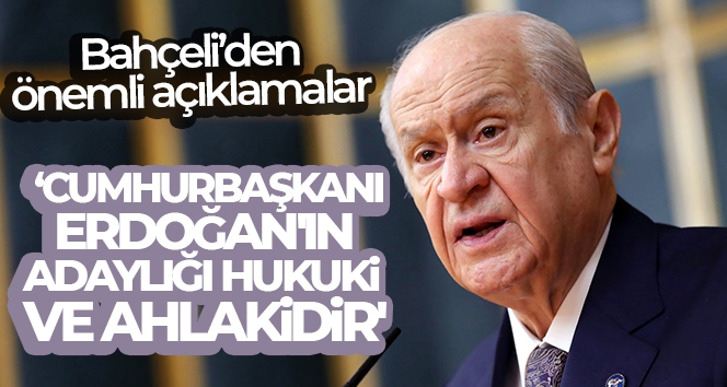 Hedeflerinin Cumhurbaşkanı Recep Tayyip Erdoğan'ın açık ara farkla tekrar cumhurbaşkanı seçilmesi olduğunu vurgulayan Bahçeli, Erdoğan'ın adaylığına karşı çıkan muhalefete seslenerek, Recep Tayyip Erdoğan'ın adaylığından bu kadar çok mu korkuyorsunuz da karşı çıkıyorsunuz. Cumhurbaşkanı Erdoğan'ın adaylığı hukuki ve ahlakidir' dedi.