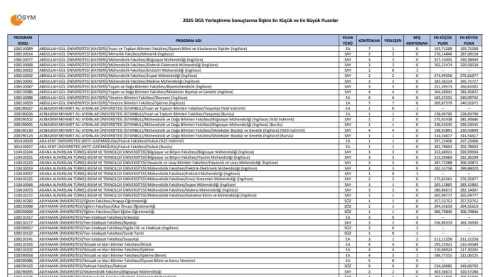 2025 DGS yerleştirme sonuçları açıklandı ve yerleşemeyen adaylar için ek tercih süreci başladı. 28 Ağustos - 4 Eylül tarihleri arasında yapılan tercihler sonucunda 103 bin 76 adaydan sadece 56 bin 634'ü bir yükseköğretim programına yerleşti.