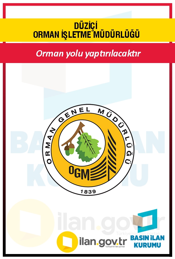 DÜZİÇİ ORMAN İŞLETME MD. D.S.İ. tarafından, Düziçi Orman İşletme Müdürlüğü, Düziçi Orman İşletme Şefliği, 001 Kod Nolu B Tipi Orman Yolu Yapımı yapım işi 4734 sayılı Kamu İhale Kanununun 19 uncu maddesine göre açık ihale usulü ile ihale edilecek olup, teklifler sadece elektronik ortamda EKAP üzerinden alınacaktır.